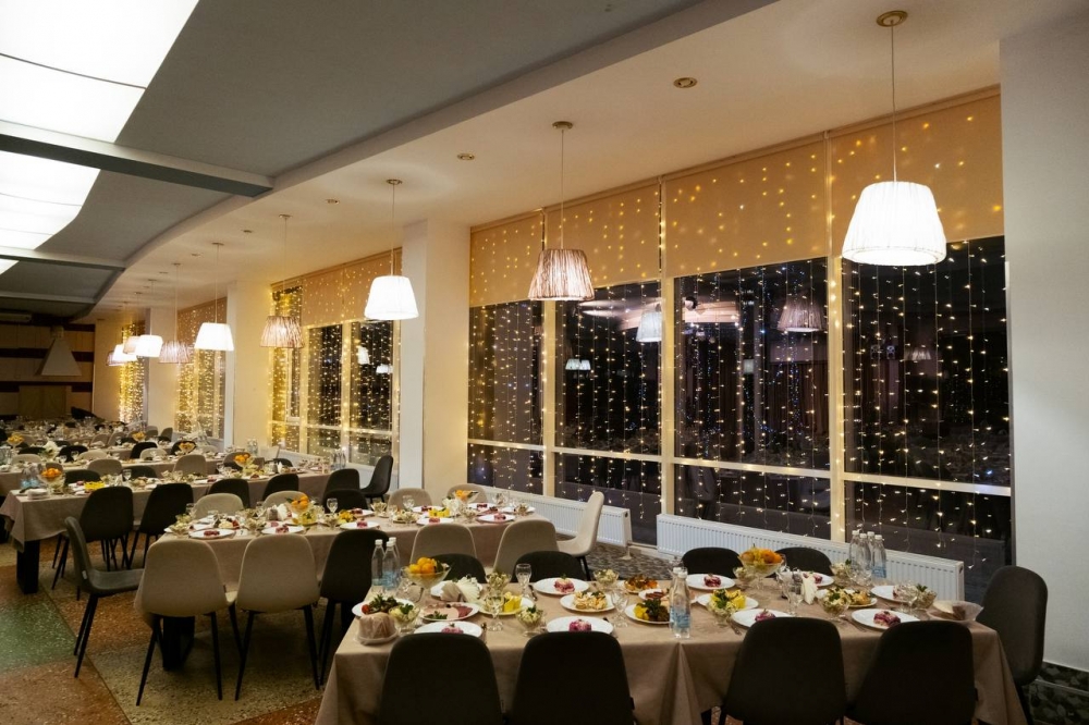 Пансионат "Буревестник" предлагает уютное пространство в ресторане, где мы сможем насладиться праздничной атмосферой и порадовать друг друга хорошим настроением. Не упустите шанс провести время с коллегами в непринужденной обстановке, обменяться новогодними пожеланиями и просто отлично отдохнуть.